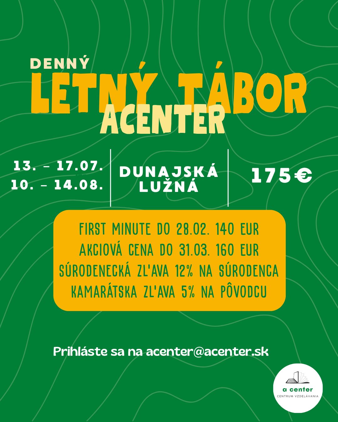 Nenechajte prijímačky na náhodu a registrujte sa na acenter@acenter.sk, alebo cez kontaktný formulár